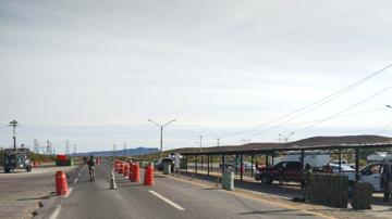 El secretario de Seguridad Pública Municipal, César Omar Muñoz Morales, acudió a la glorieta del kilómetro 20 de la carretera Panamericana para atender una manifestación de transportistas que bloqueaban el acceso a la ciudad.