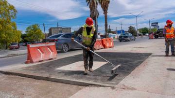 JMAS en etapa final de bacheo en la Óscar Flores tras