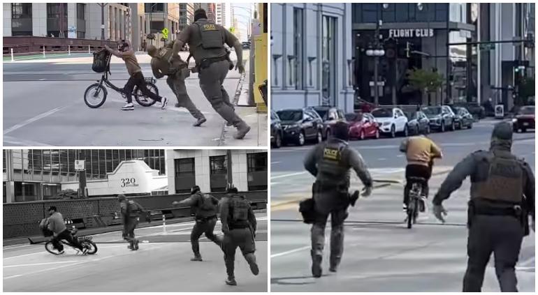 Hombre que iba en una bici se acercó a un grupo de agentes del Servicio de Inmigración y Control de Aduanas (ICE, en inglés) para supuestamente insultarlos y luego huir vertiginosamente en las calles de Chicago, Illinois.