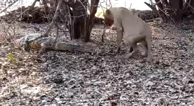 Indican que el olor a carne fresca interesó tanto a un león macho que no formaba parte de la manada, como a un grupo de grandes cocodrilos de un río cercano.