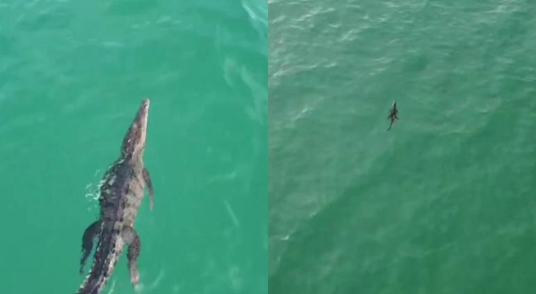 ¡Un pequeño paseo! Así avistaron a cocodrilo en playas de Jalisco 🎦