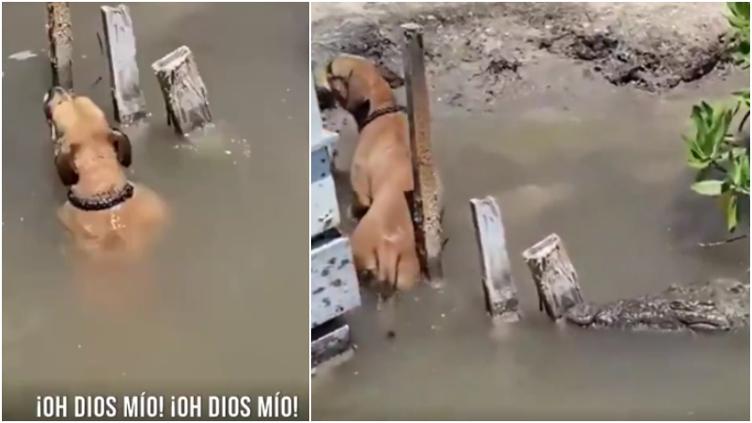 隆Por segundos! Perrito escap贸 de cocodrilo en Belice 馃帵