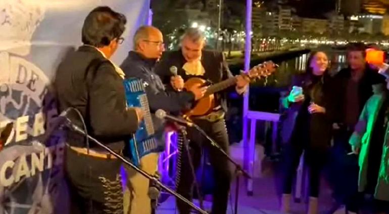 El expresidente Felipe Calderón fue captado y viralizado mientras cantaba una canción de Vicente Fernández en el Real Club de Regatas de Alicate, el mandatario tenía la letra de la canción en mano y fue acompañado por mariachi.