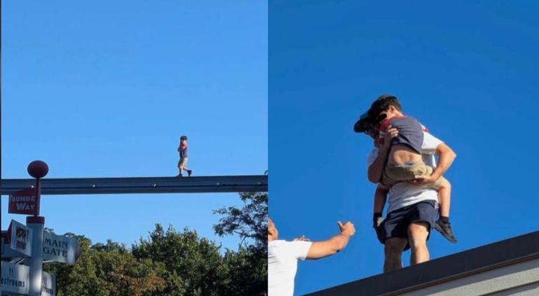 Videos compartidos en redes sociales mostraron al niño tambaleándose con dificultad, mientras testigos hacían señas desesperadas para llamar la atención del personal. Uno de los presentes logró subir hasta la estructura y rescatarlo, evitando lo que pudo ser una tragedia.
