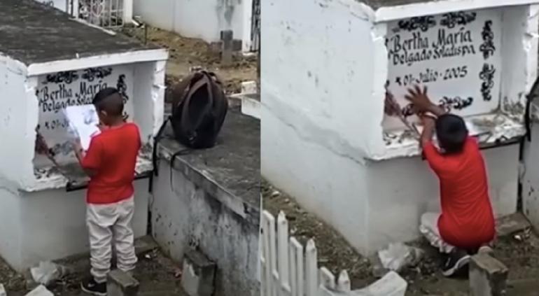 Un pequeño se hizo viral cuando lo descubrieron visitando la tumba de su mamá, ¿la razón? Fue a mostrarle su boleta y a llevarle unas flores. Después de que termina la visita, el niño le da un fuerte abrazo al lugar donde descansa su madre.