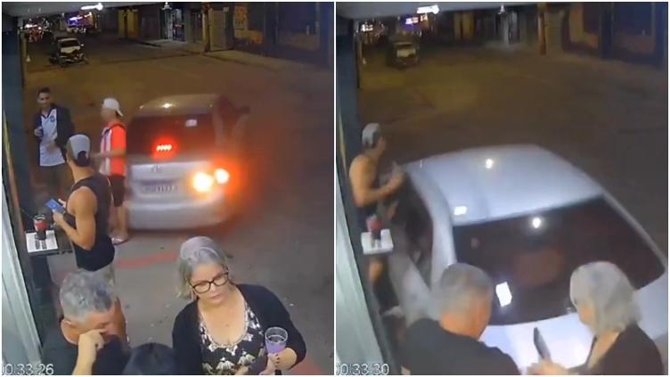 Momento en que conductor embistió a clientes de puestito 🎦