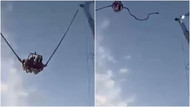 En el video se puede ver cómo las cuatro personas se suben y como el juego se enciende, yendo de arriba hacia abajo cuando de la nada, en la “cima” una de las cuerdas se rompe haciendo que la esfera caiga a gran velocidad.