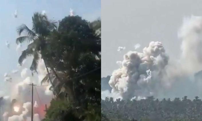 🇮🇳 | Al menos 14 muertos tras una explosión masiva en una unidad de fabricación y almacenamiento de fuegos artificiales en Mundathikode, India. El incidente ocurrió durante los preparativos para el festival Thrissur Pooram. Hay decenas de heridos y los equipos de rescate… pic.twitter.com/BsAz8TE8is