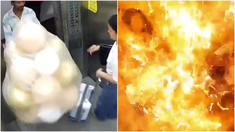 A través de las redes sociales, se viralizó un video en el que se puede ver el momento exacto en el que unos globos llenos con gas hidrógeno explotaron dentro de un ascensor, hiriendo a dos personas.