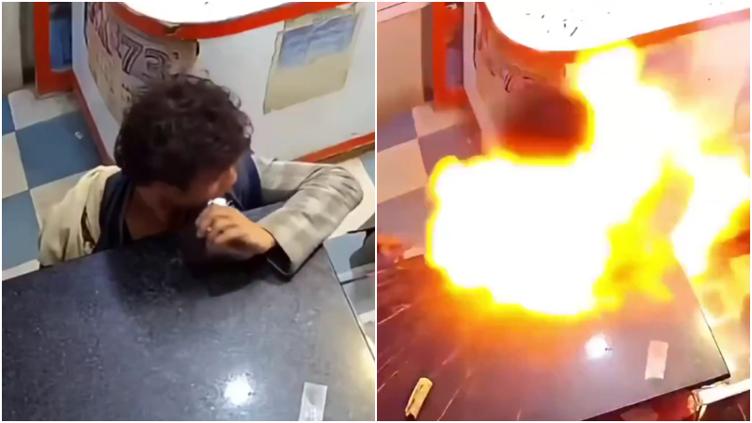 A través de las redes sociales, se viralizó un video tomado en la India en el que se puede ver el momento en que un hombre causa una explosión y pequeño incendio tras morder la pila de un celular.