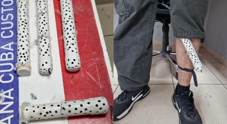 El sujeto usó ligas para esconder los tubos en distintas partes de su cuerpo y que estos pasaran desapercibidos.