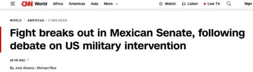 “Pelea estalla en el Senado mexicano, luego de un debate sobre la intervención militar de Estados Unidos”.