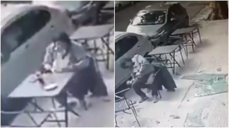A través de las redes sociales, se viralizó el video de un hombre que disfrutaba tranquilamente de una taza de café cuando en cuestión de segundos, un vidrio enorme le cayó en la cabeza.