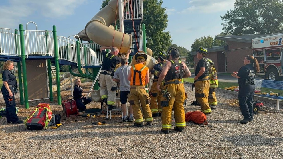 Un hombre de 40 años vivió momentos de angustia el pasado sábado 16 de agosto por la tarde, después de quedar atrapado dentro de un tobogán tubular en un parque infantil de Vernon, Estados Unidos. La emergencia movilizó a los cuerpos de rescate locales, quienes tuvieron que cortar parte de la estructura para liberarlo.