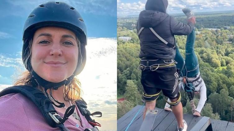 La mujer terminó un salto de cerda desde la antigua torre de cladera, adaptada para actividades de alto riesgo.