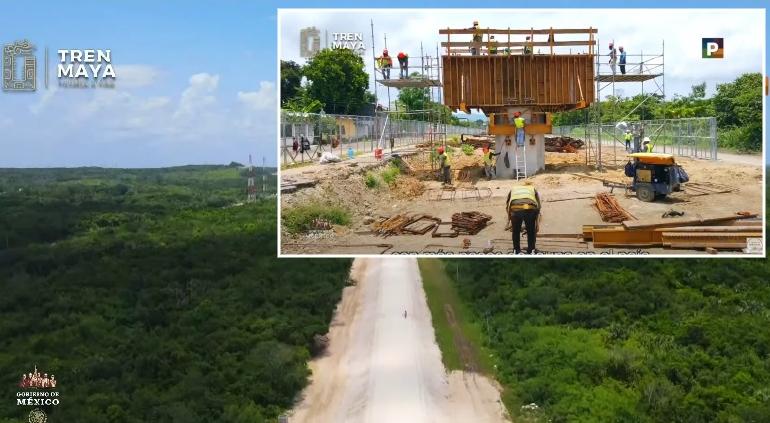 “En Tenosique, Tabasco, avanza la construcción de pasos de fauna elevados con el armado de acero y cimbrado de muros”, indicó el video del reporte oficial este 15 de agosto.