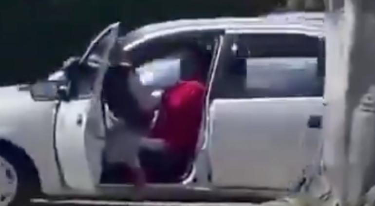 VIDEO: Mujer se colg贸 de puerta de auto en movimiento para evitar robo馃帵