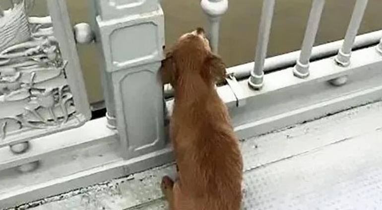 Viralizan a conmovedor perrito que espera a dueño en puente de China