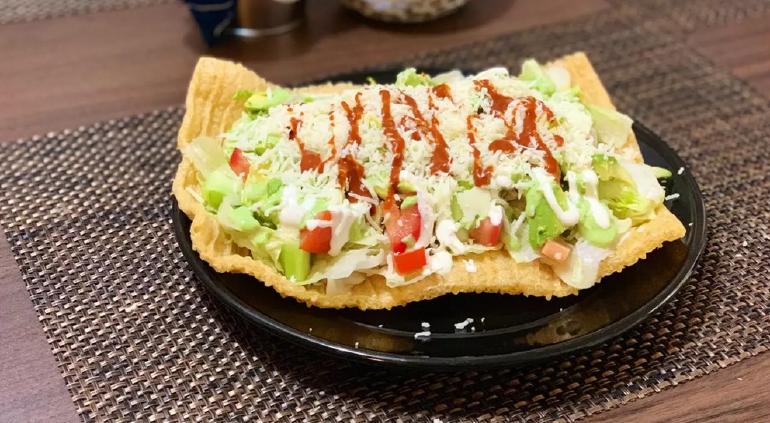 Poner en el cuero la lechuga, tomate, pepino, aguacate, ranch, aderezo verde, queso y salsa Valentina. Buen provecho