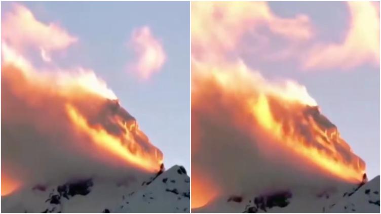 A través de las redes sociales, se viralizó un impresionante video grabado en China, en donde captaron cómo una montaña nevada parece estar en llamas gracias a un efecto óptico que crea el Sol.