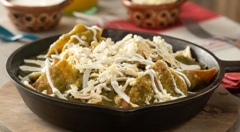 Disfruta de unos deliciosos chilaquiles verdes. Puedes acompañarlos con frijoles refritos, huevos estrellados o aguacate para complementar el plato.