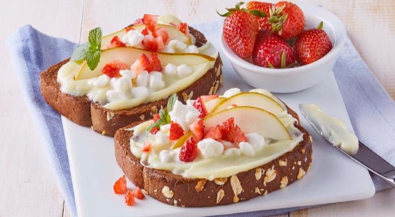 Prepara rápido este delicioso mollete de fresa con queso cottage