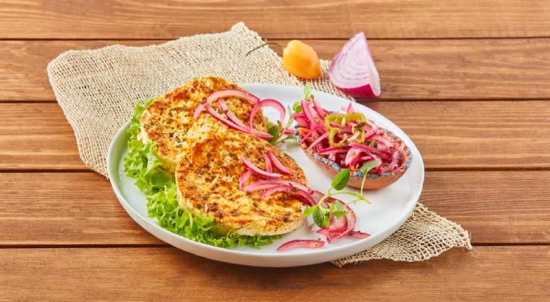 -Para las cebollas encurtidas, mezcla la cebolla morada con las rodajas de chile, el orégano, la sal, el vinagre y el jugo de limón; deja reposar por 5 minutos. Sirve el queso con las cebollas encurtidas y ofrece.