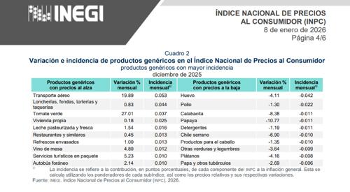 El incremento de precios en el transporte aéreo y en establecimientos como taquerías fue lo que mayor impacto tuvo en la inflación durante el mes de diciembre.