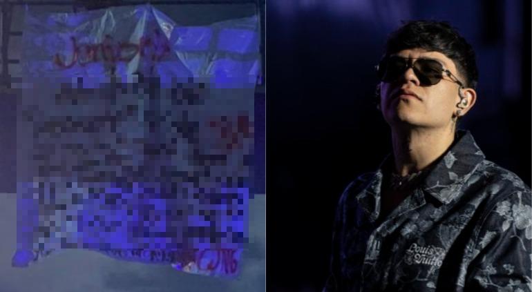 Al llegar encontraron la manta con un mensaje amenazante contra el cantante Junior H, a quien le exigieron no presentarse en la ciudad.