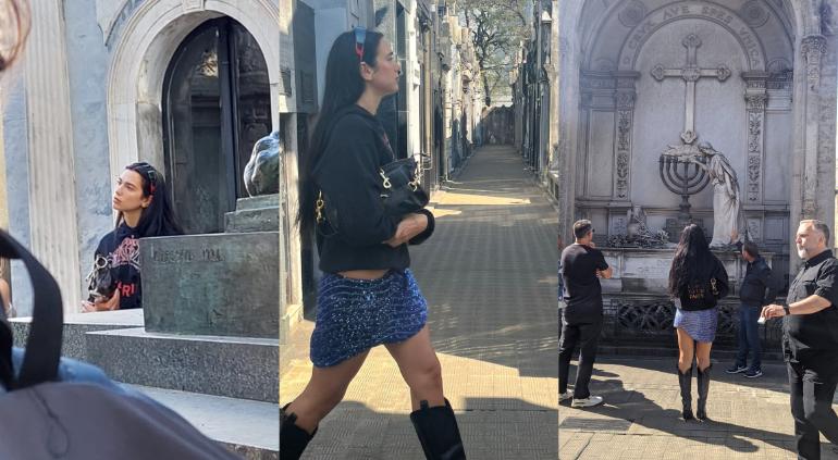 “Vine a pasear al cementerio de recoleta y terminé haciendo el recorrido con la mismísima Dua lipa”, publicó la usuaria en su cuenta de Twitter, junto a fotos de la cantante.