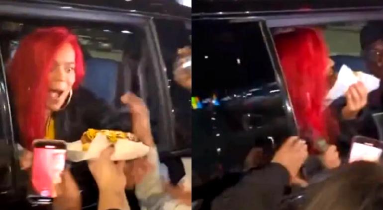 En las redes sociales comenzaron a viralizar un video en el que puede verse como Karol G toma el hot dog de una de sus fans, quien afirma que iba a llorar de la emoción pero que se quedó con hambre.