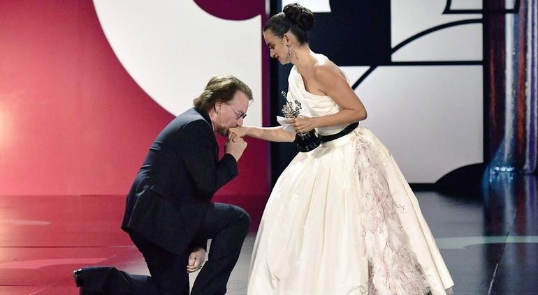 "Los artistas solemos perdernos en nosotros. Penélope se pierde en todos los demás y por eso nosotros nos perdemos en ti" expresó Bono dirigiéndose a la actriz.