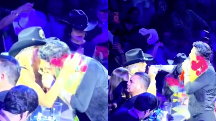 En redes sociales circulan videos del momento en el que Nodal se acerca y ella le besa la mano.