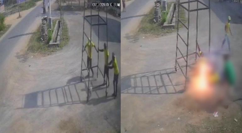 Un video que circula en redes sociales muestra el momento en que dos albañiles murieron electrocutados mientras movían un andamio metálico en plena calle. Las imágenes del accidente se viralizaron rápidamente.