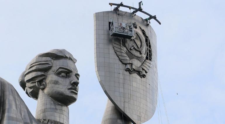 El Gobierno de Ucrania retiró los símbolos soviéticos del monumento a la Madre Patria ubicado en la ciudad de Kiev.
