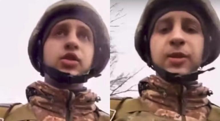 En el video podemos apreciar al joven ya uniformado con el chaleco y el casco puestos, momentos antes de salir a combatir a las fuerzas rusas.