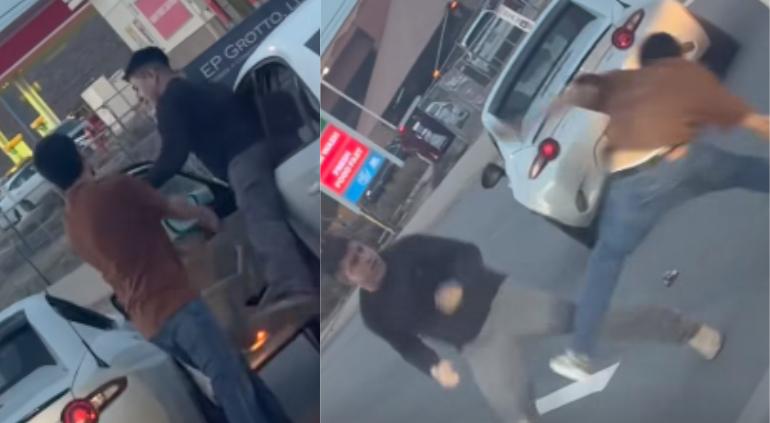 Se puede apreciar como los dos involucrados se empiezan a dar empujones que terminaron en una confrontación a golpes.