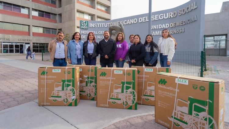 Alejandro Pérez Escalante, dirigente local del Partido Verde Ecologista de México (PVEM) en Ciudad Juárez, realizó la donación de sillas de ruedas al Hospital General de Zona No. 35 del Instituto Mexicano del Seguro Social, como una acción de apoyo a pacientes y personal médico de la unidad.