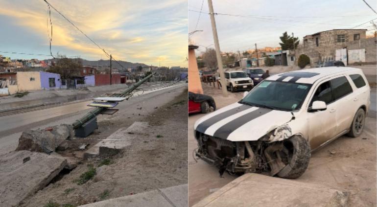 Una camioneta Dodge Durango blanca terminó impactada contra un poste metálico la mañana de este jueves en la colonia Felipe Ángeles.