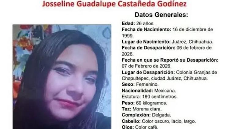 Josseline Guadalupe Castañeda Godínez, de 26 años de edad, desapareció el pasado 6 de febrero del presente año, tras escapar de un centro de rehabilitación de la colonia Granjas de Chapultepec en Ciudad Juárez.