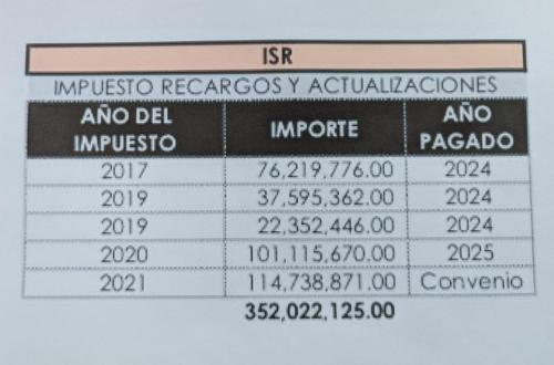 “Nosotros estamos al corriente, hemos reportado el tema del impuesto sobre la renta muy bien, lamentablemente estamos arrastrando temas del 2017, 2019, 2020 y 2021, es lo que yo quería comentarles”, añadió.