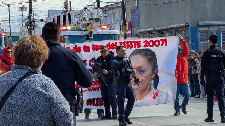 @puentelibre.mx Profes del ISSSTE "se colaron" al desfile para protestar #CiudadJuárez #Noticias ♬ sonido original - PuenteLibre.mx
