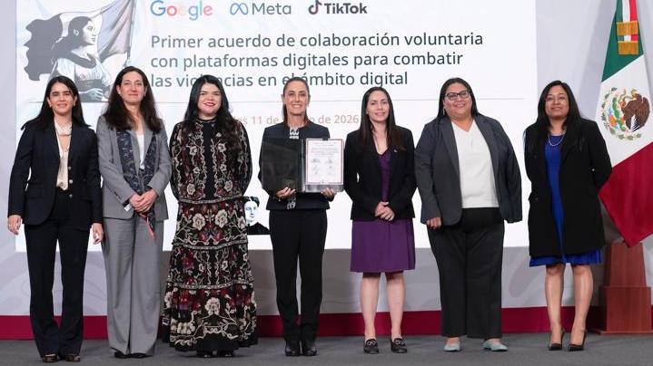 La presidenta Claudia Sheinbaum Pardo anunció un acuerdo voluntario entre el Gobierno de México y plataformas digitales como Google, Meta y TikTok para prevenir y atender la violencia digital contra las mujeres en redes sociales.