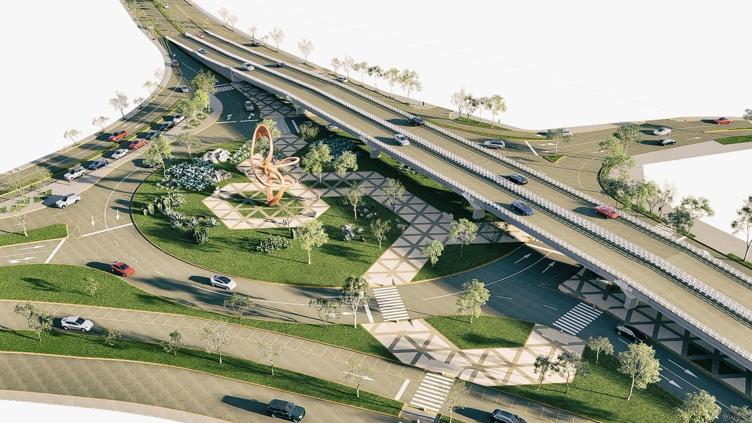 El diseño contempla además zonas peatonales para un cruce seguro y ordenado.