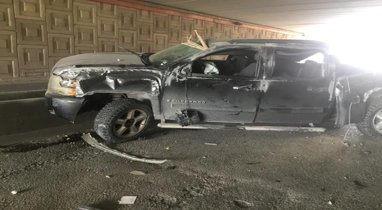 Hace unos momentos, ocurrió un aparatoso percance vial en el cual, dos vehículos estuvieron involucrados; Chevrolet Silverado volcó.