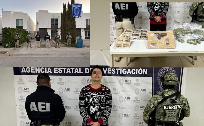La Fiscalía del Estado y el Ejército Mexicano, logró la detención de un hombre y el aseguramiento de un arma de fuego, municiones y droga, tras cumplimentar una orden de cateo en la colonia Banús Residencial.