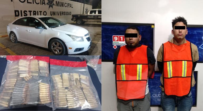 La Policía Municipal informó el arresto de dos sujetos presuntamente implicados en un homicidio en la colonia Héroes de México, mismos a los que les aseguraron más de 300 balas, armas y equipo táctico.