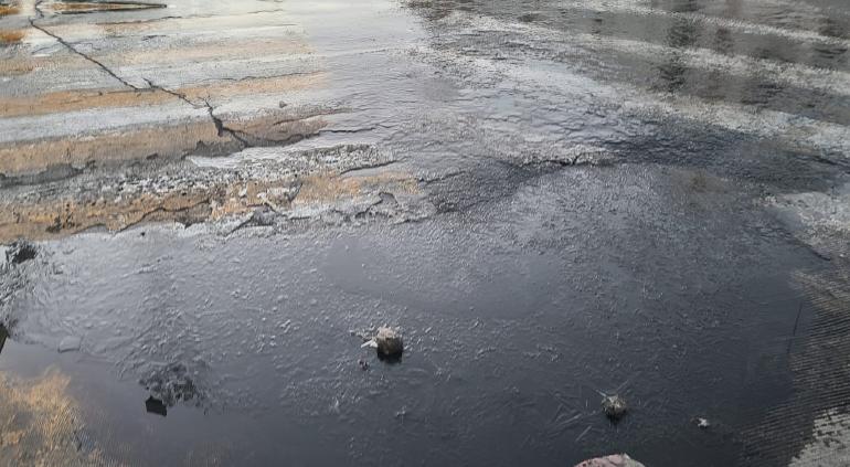 Ante las bajas temperaturas en la ciudad de Chihuahua, en el cruce de la Aldama y Vicente Guerrero, las calles amanecieron cristalizadas.