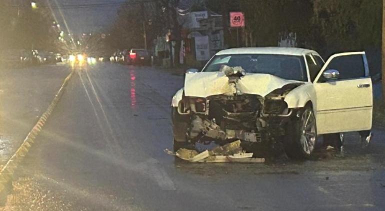 El conductor de un Chrysler 300 perdió el control del volante y chocó contra un poste en la avenida Vicente Guerrero.