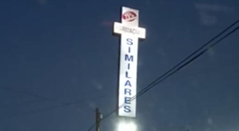 A través de redes sociales ciudadanos chihuahuenses compartieron un video tomado el día de ayer luego de que el viento “movió” fuertemente un anuncio de Farmacias Similares.